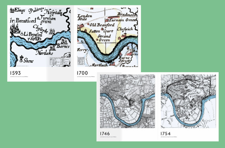 Two of our favourite, and most active, Chiswick residents, Karen Liebreich and Sarah Cruz, had a great idea for cheering up the rather damp and grim walls under the railway bridge next to Turnham Green Station - a mural. The mural is a set of maps dating from 1593 to 2018 all showing the same part of the Thames running through Chiswick. On each section is shown an artwork that relates to the period of the map, by an artist working or living in the area.