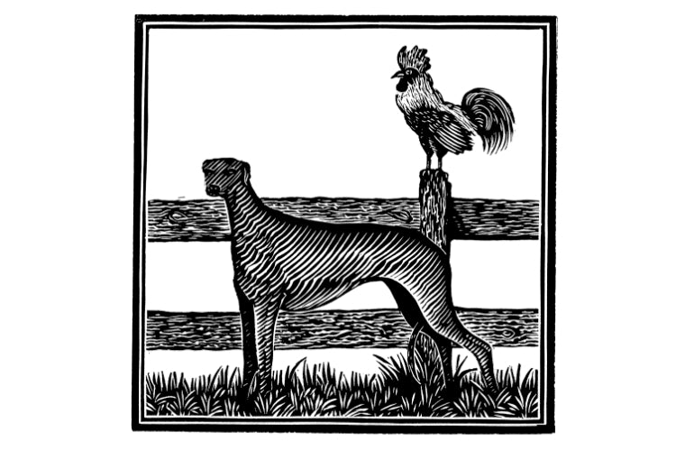 Simultaneously, I have lost count of the numbers of people who ask if I have though of doing dogs (obviously for them it needs to be their particular favoured breed!). I have done a fair few dogs over the years, usually in the context of other elements - like the greyhound and rooster illustrated for WH Smith many years ago..."