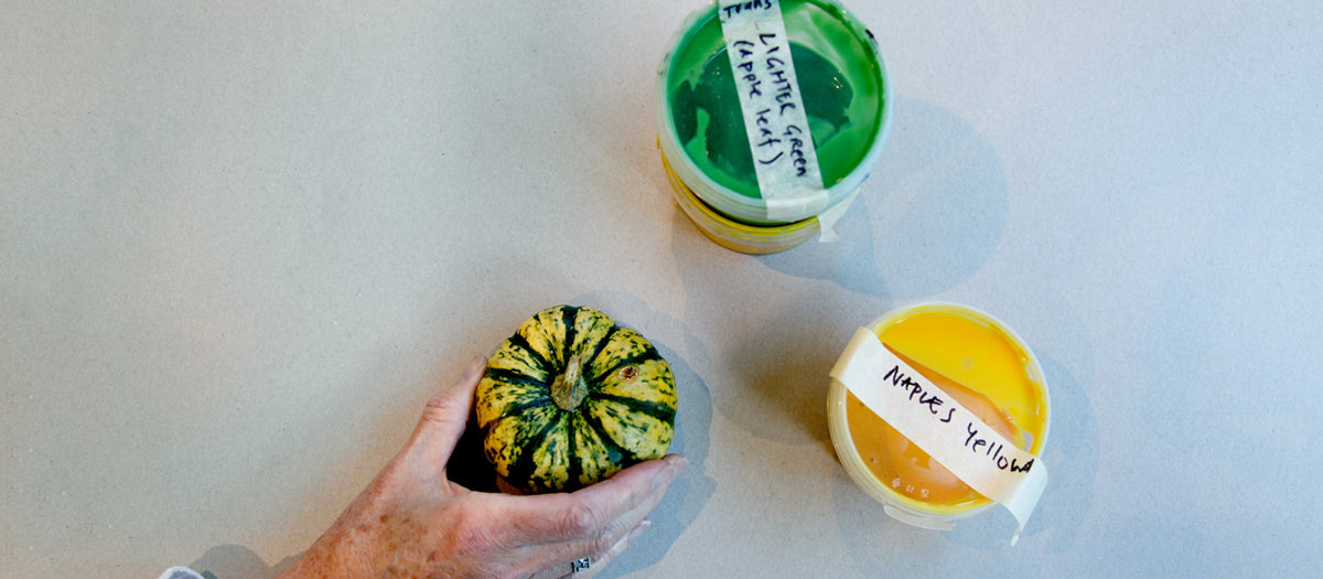 Nature Study - Seasons is a quartet of screenprints, inspired by mid-century School Prints and vintage educational posters. Using watercolour studies of individual natural treasures, Kate develops a poster design with hand-drawn type. Colour separations are painted by hand on overlays to make a separate screen for each colour - usually 9 or 10 colours.
