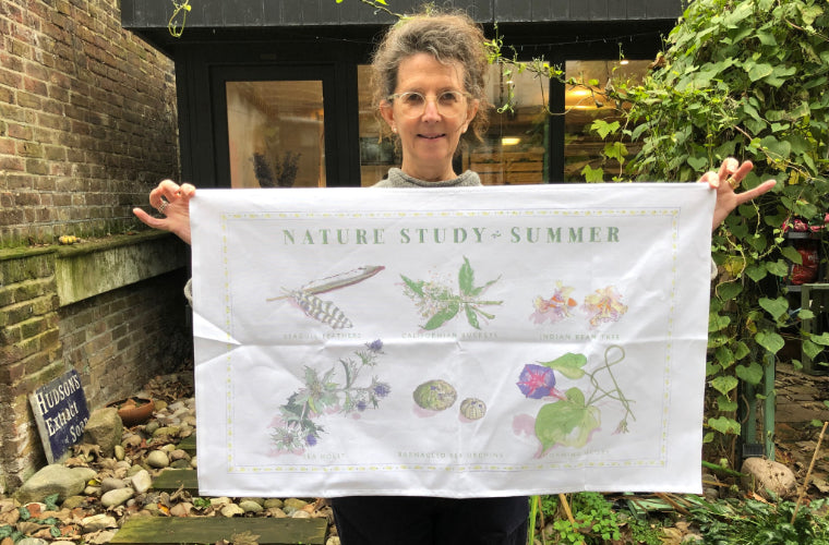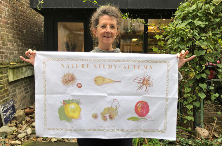 "I’ve always loved the simplicity and graphic quality of a good educational poster - like lovely cut away flower anatomy - stigma, stamen, pistil.... The intriguing colours created by over-printed layers are so delightful and subtle. With these in mind I set out to use my watercolour sketches from nature to design a series of silkscreen prints to capture the essence of the seasons.