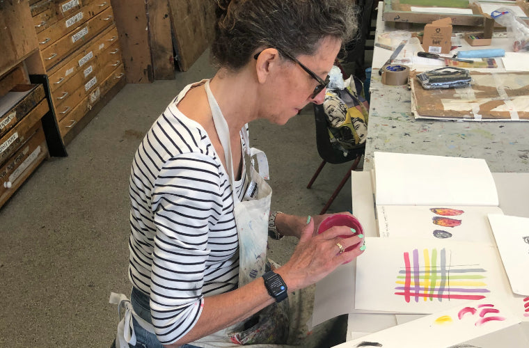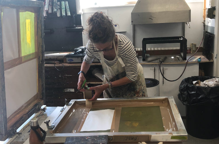 The energy and texture of splatterware is a delight. All the original watercolours for these prints were drawn in white enamel jugs. Kate uses a splatter-technique to create artwork to colour the jugs specifically for each print. These prints have a more painterly feel as Kate explores working with no drawn outline.